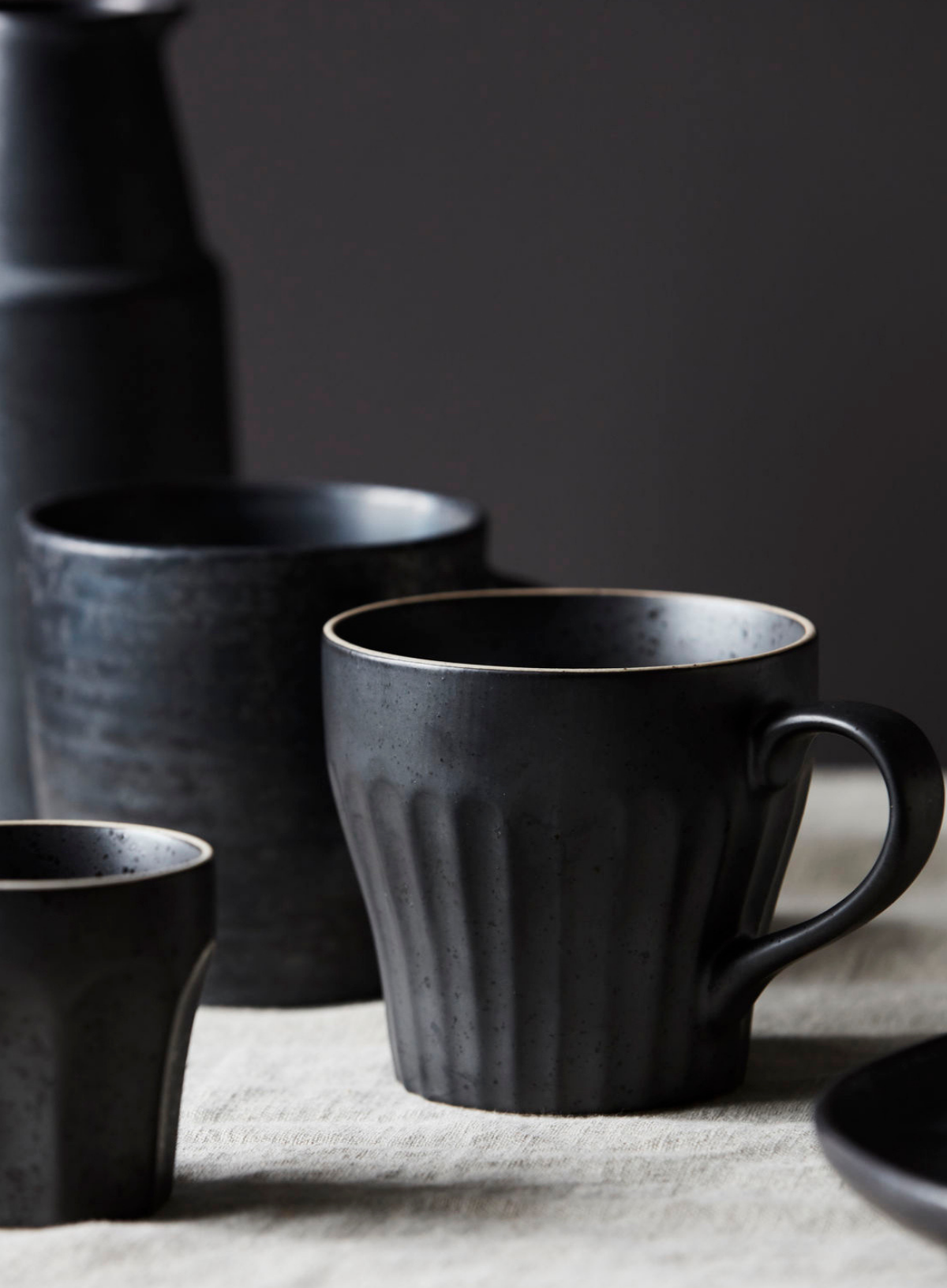 Looking for the next update to your dinnerware? Berica from House Doctor is a black stoneware cup that demands your attention in an understated way. The speckled glaze and fluted design come together to create a modern shape while the handle makes the cup comfortable to hold. It is ideal for everyday use, for your morning coffee or the spontaneous get-together with your friends. If you want to set an eye-grabbing table, combine Berica with the range of black cake plates and bowls from House Doctor.