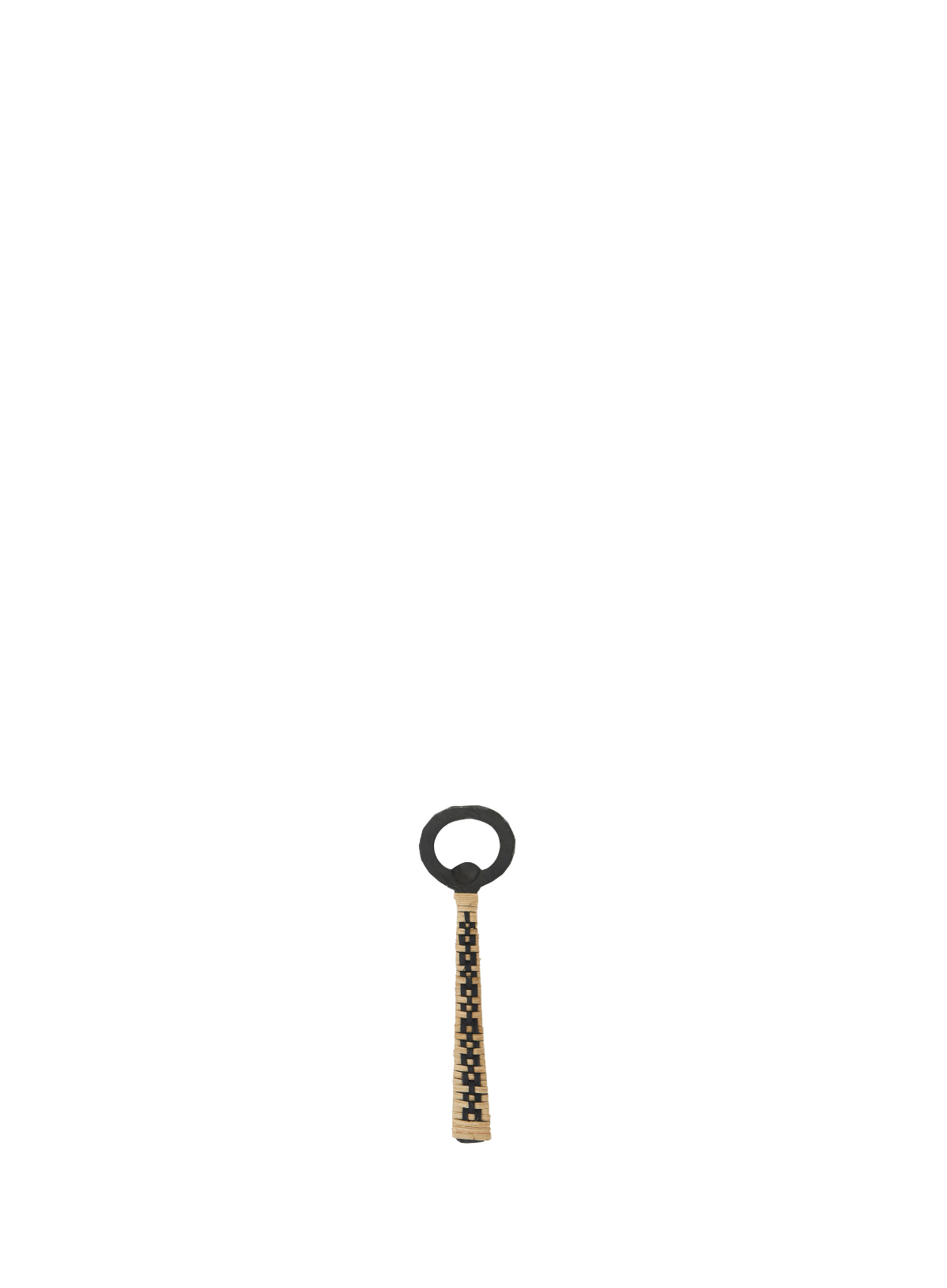 Iron bottle opener with woven cane handle in black and natural from Madam Stoltz