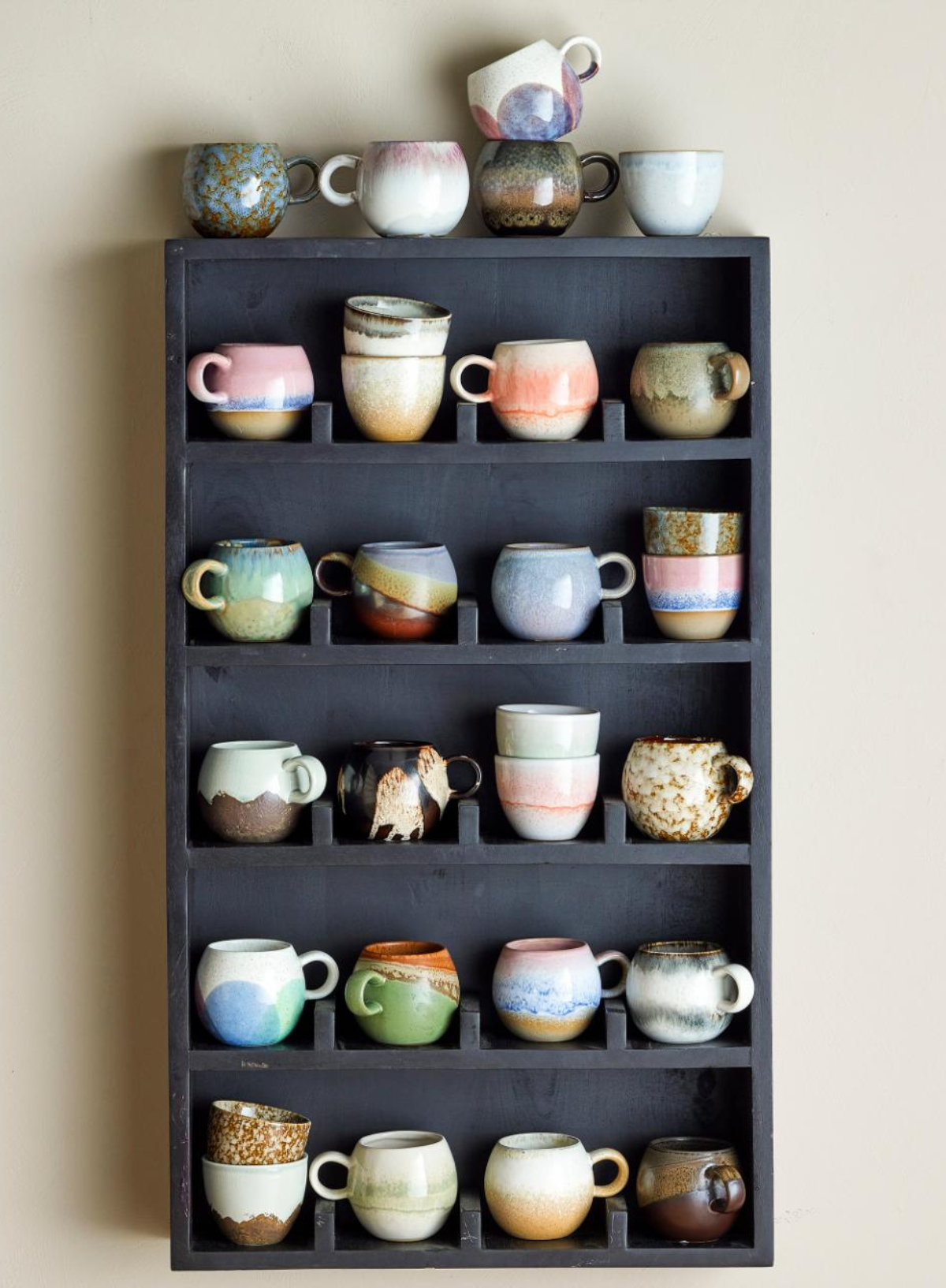 The Paula Cup by Bloomingville is a charming addition to any coffee table with its unique, hand-painted details.