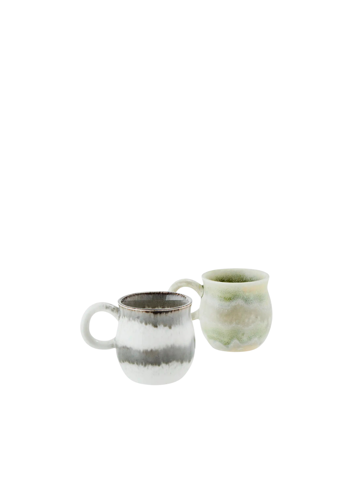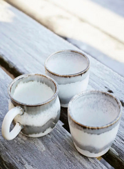The calm and harmonious colours of these stoneware mugs set the scene for a relaxing time with hot drinks.