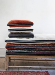 A striped, coarse cotton band separates the layers. It suits chairs or terrace decks.