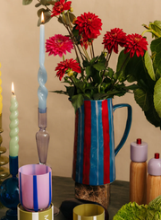 Bring character and charm to your home with Maegen’s hand-painted ceramic striped jugs. Each piece is crafted with care, making every stripe unique. A versatile statement piece, they’re perfect for serving water at the table, or styled as a vase to display fresh blooms on a mantle or sideboard. Bold yet timeless, these jugs blend function with artistry to elevate everyday living.