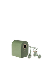 Big brother/sister mice fit this tricycle perfectly. Mice with magnets in their hands can easily hold the handles. This beautiful bike comes in a garage box to expand the play. Accessories as a basket and hanger can be purchased additionally.