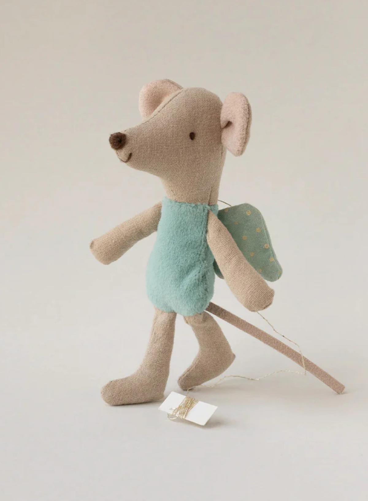 Let the imagination fly with this fairy mouse. The fairy Maileg mouse has soft wings and a string on the back to help them fly - or hang - everywhere.