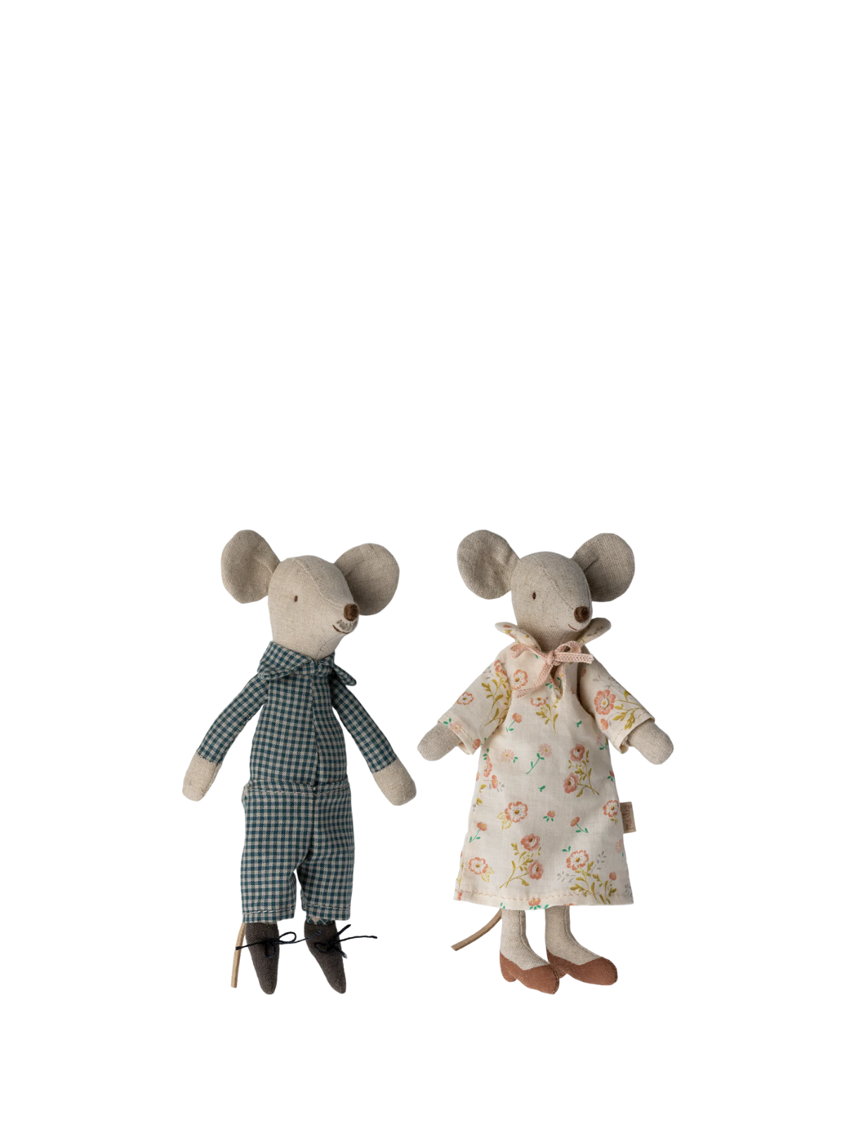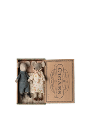 A classic Maileg mouse item. Maileg Grandma and grandpa are wearing their nightwear and beautiful shoes. The cigar box is a perfect bed for a good night's sleep. Extend their wardrobe with sets of loose clothes to create a perfect playset.