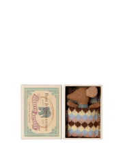 A classic Maileg item. This Maileg mouse is ready for hours of play and sleeps tight in the little matchbox. The clothes and bedlinen are made of soft fabrics with unique prints in beautiful colors.