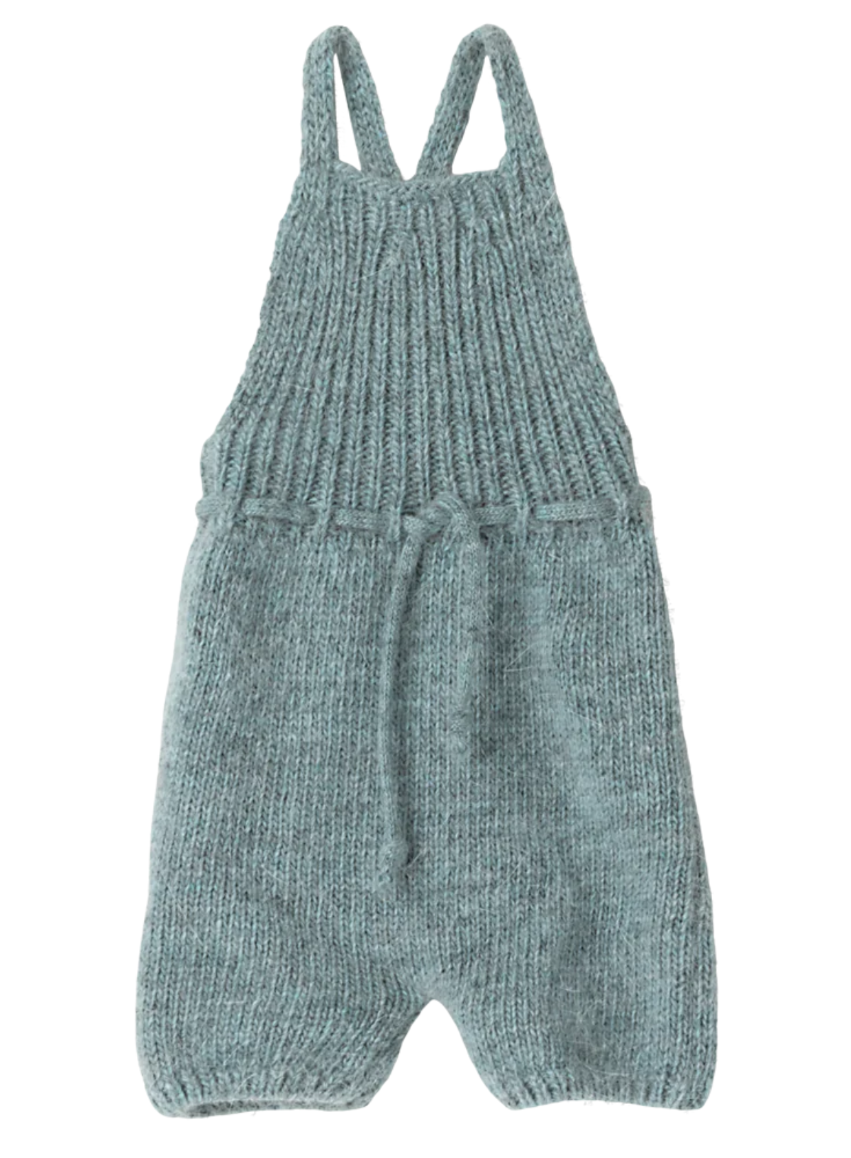The bunny and rabbit collection is made of soft natural linen and cotton fabric - which gives a lovely hand feel and look. This Maileg rabbit wears soft knitted overalls.