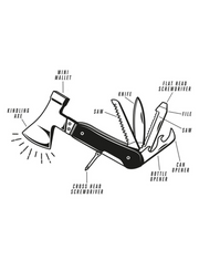 - Includes 10 tools in 1: axe (hatchet), serrated knife, saw, penknife, two bottle openers, screwdriver and more