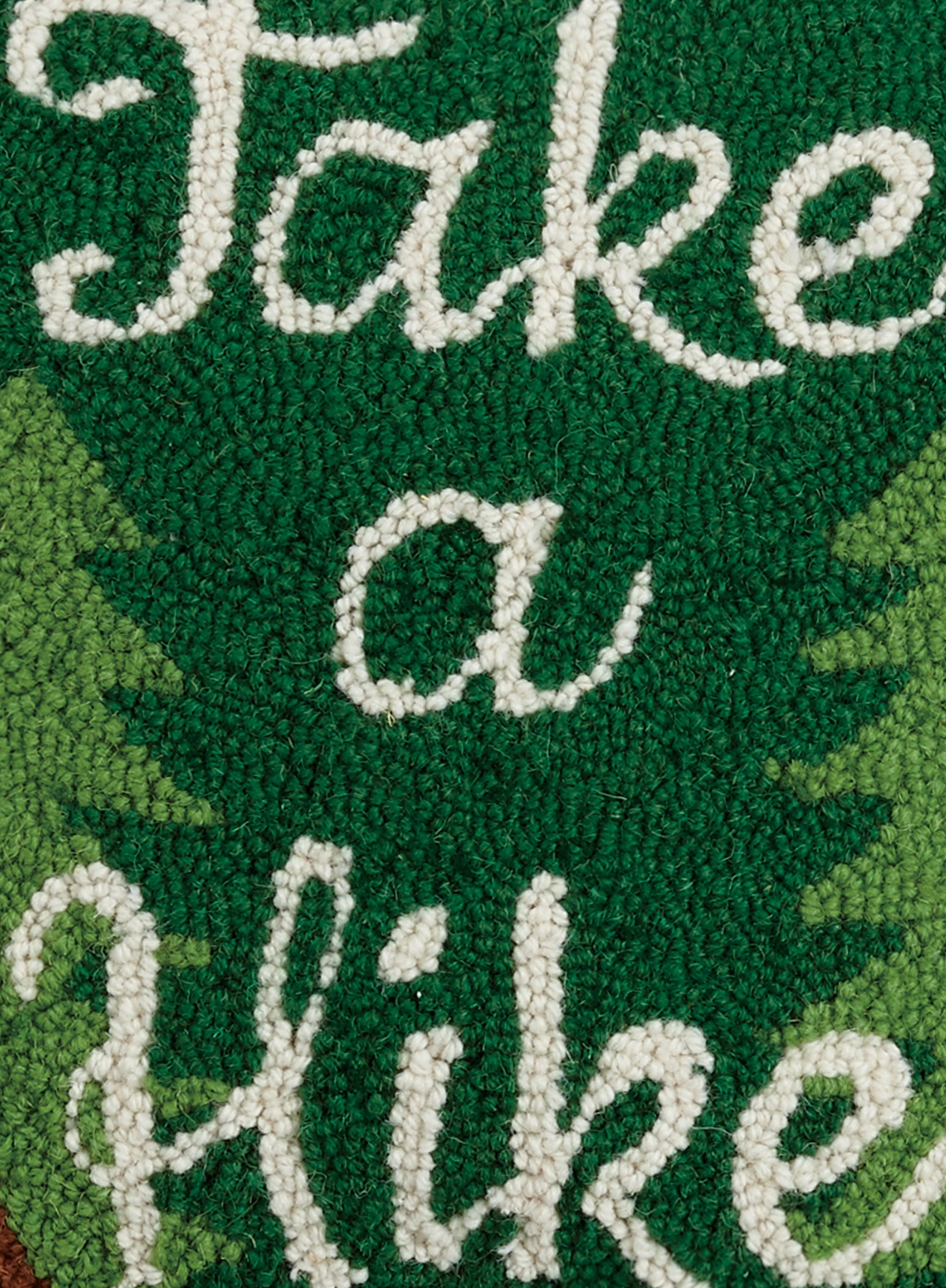 The Take a Hike Hook Cushion from Peking Handicraft features a detailed green and brown design that adds a natural, rustic touch to your living space.