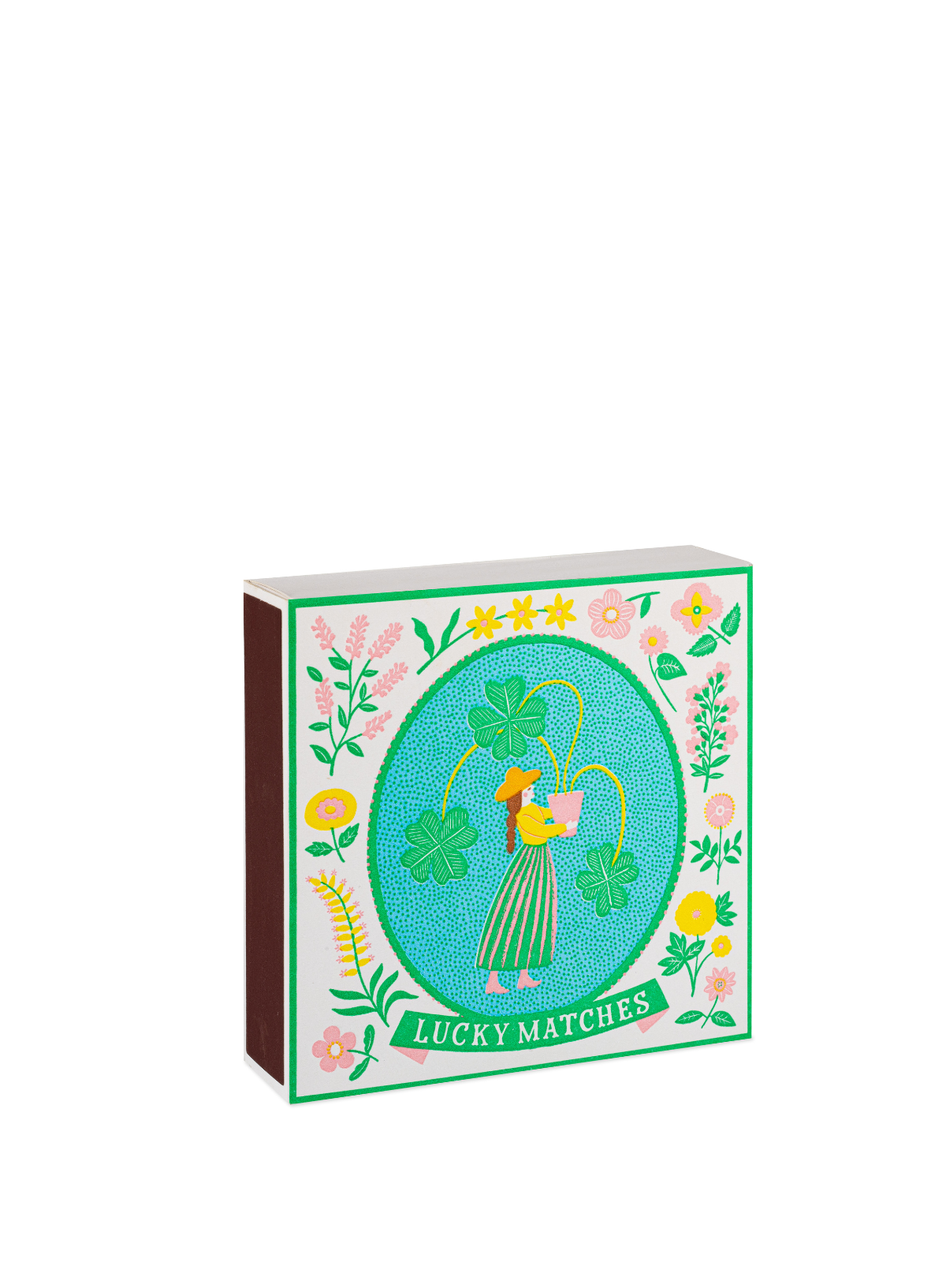 Are you feeling lucky or hoping to share a little luck? Ariane Butto brings joy and vibrant colour to this four-leaf clover–inspired matchbox design, drawing from antique samplers and vintage cross-stitch. Brought to life on a Heidelberg press in our letterpress studio.