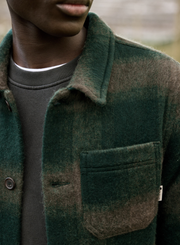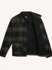 The Lorge Woven Jacket in Green Check from Faguo reimagines traditional workwear style with its rectangular pockets and pointed collar.
