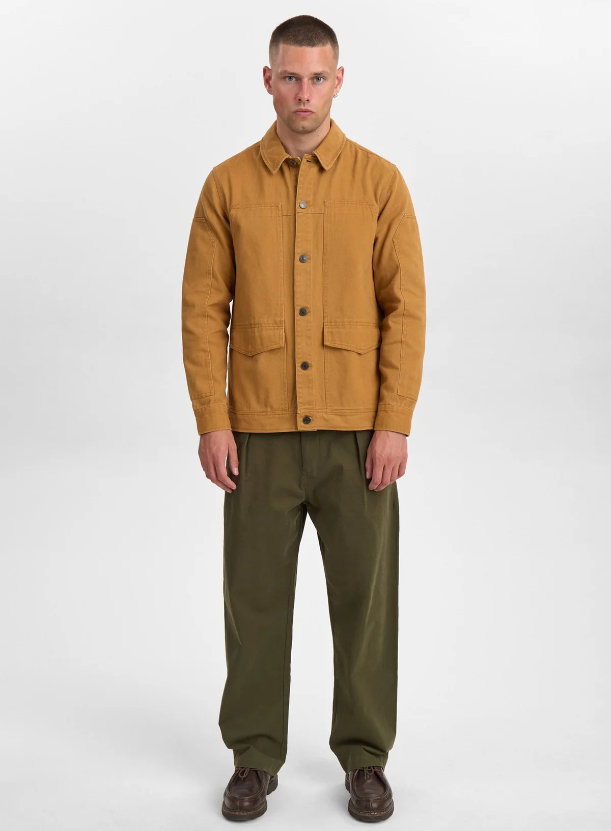 The Oscar Twill Overshirt in Golden Brown from Anerkjendt combines classic style with practical design.