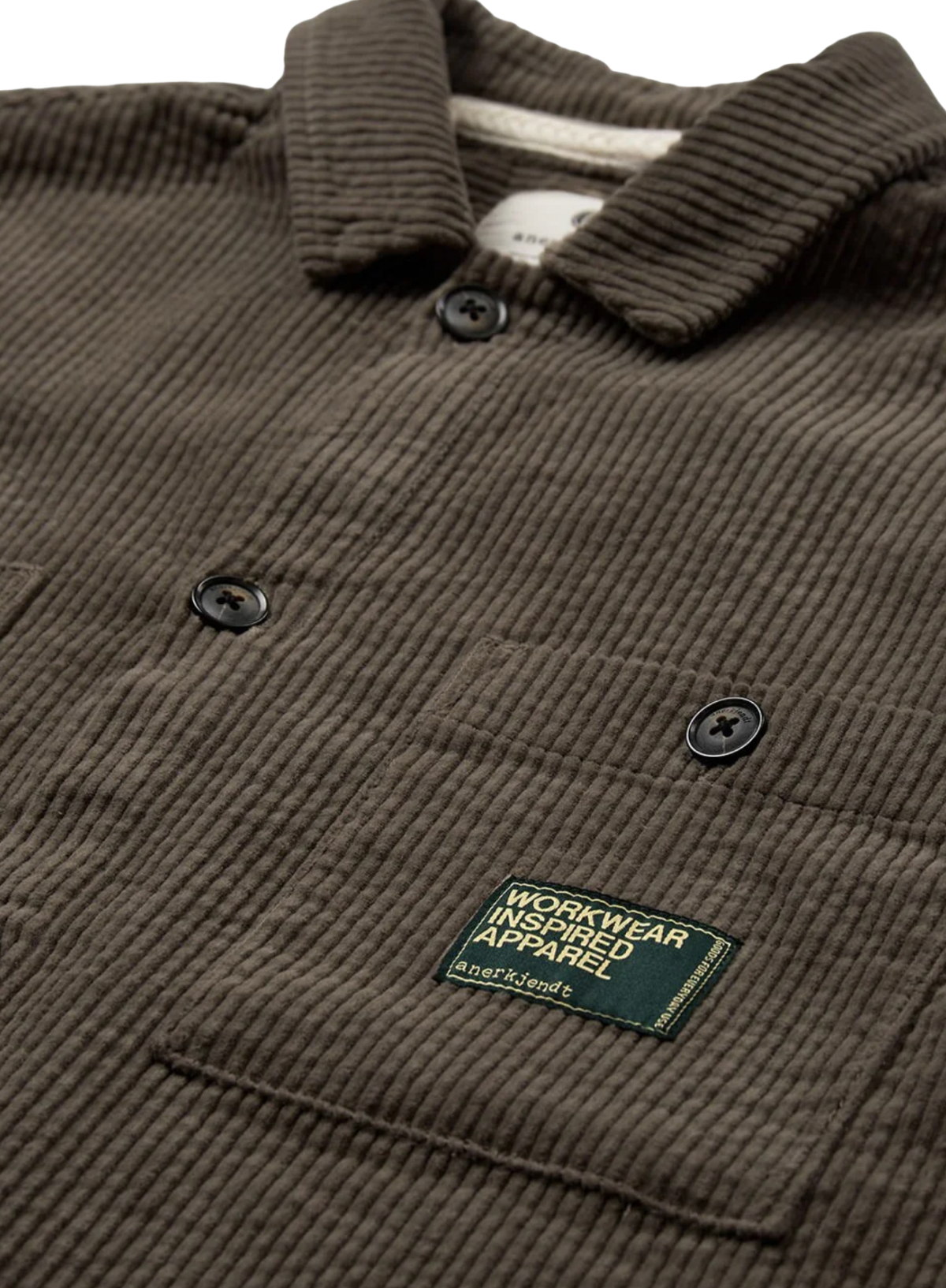 The Theo Cord Long Sleeve Overshirt from Anerkjendt features 100% Cotton fabric in a deep lichen green shade. Designed for comfort and durability, it’s an ideal lightweight layer for everyday wear.
