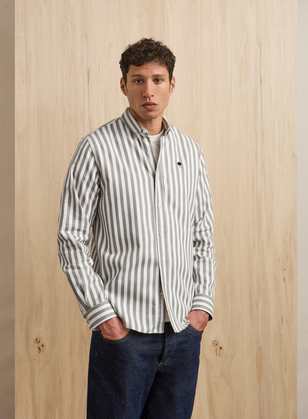 Featuring a button-down collar and subtle tree embroidery, it adds a touch of distinctive style.