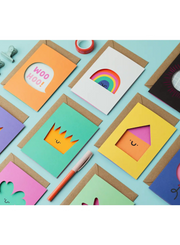 This card offers a delightful experience thanks to its die-cut design that shapes the card into a house with vibrant purple and orange colours. Measuring A6 (105 x 148 mm or 4.1 x 5.8 inches), this offers lots of space for your personalised message. It comes with a brown envelope. The inside of the card is blank.