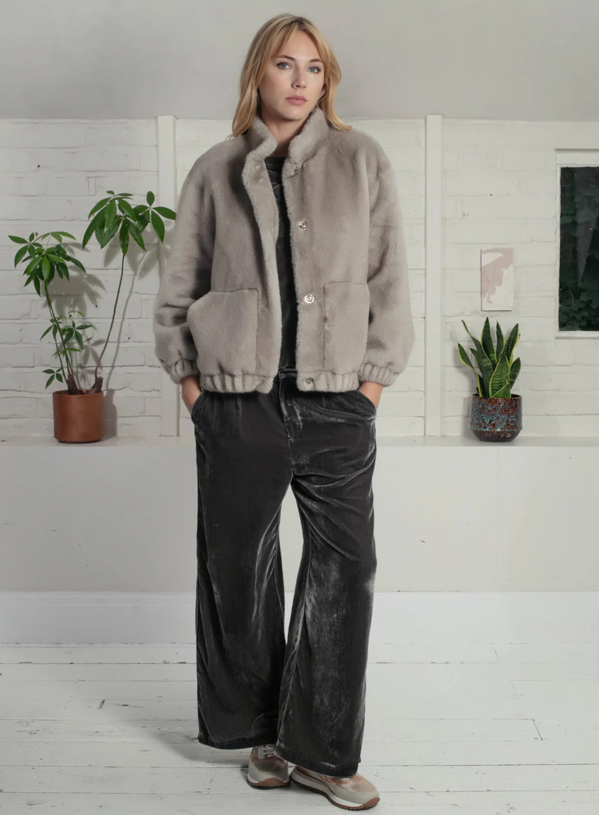 The Aubrey Faux Fur Jacket combines luxury and practicality with its plush fabric that mimics real fur while remaining cruelty-free.