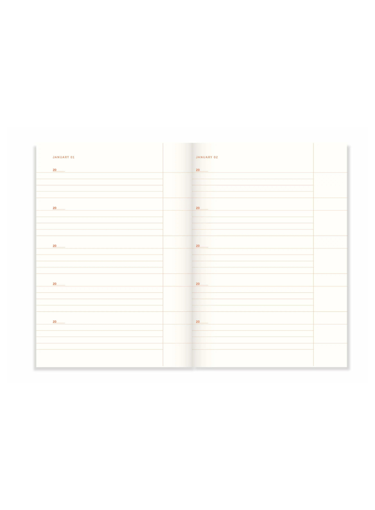 A very simple act that you can look back on with great pleasure in a few years. This booklet has been designed with the idea of recording your daily thoughts for 5 years. Super nice to take a moment for yourself in this way and to reflect on your day, but also very nice to read this later and observe all developments.