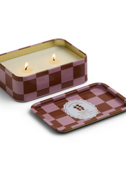 Inspired by Mediterranean gardens at the height of summer, the A dopo! Heirloom Tomato tin candle delivers a vibrant, green fragrance that’s as playful as it is refreshing. Packaged in a glossy red and pink checkered tin adorned with a tomato vine illustration, this whimsical 6.5 oz candle evokes ripe produce, fresh herbs, and sun-soaked afternoons outdoors.