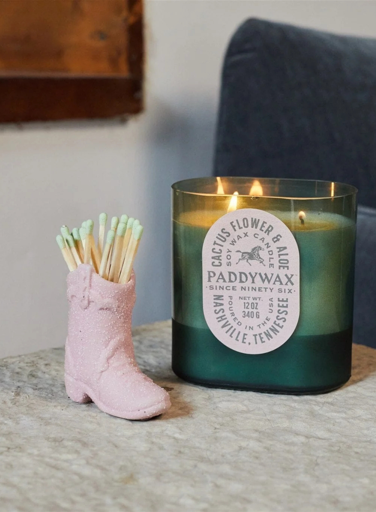 We're head over boots for our home in Nashville, TN! This vintage-inspired ceramic cowboy boot match holder includes 25 safety matches that are easily lit with a strike on the bottom of the boot! After the safety matches run out, this holder is compatible with any match and can provide light by striking on the rough ceramic surface. Whether you are daydreaming about being back in the Music City or wanting a Western vibe, these ceramic boot and hat accessories make the perfect gift set or bookshelf accessory.