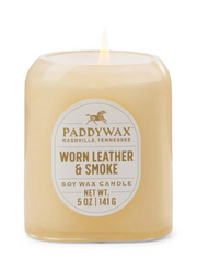 Vista Glass Candle Tan in Worn Leather & Smoke 5oz from Paddywax