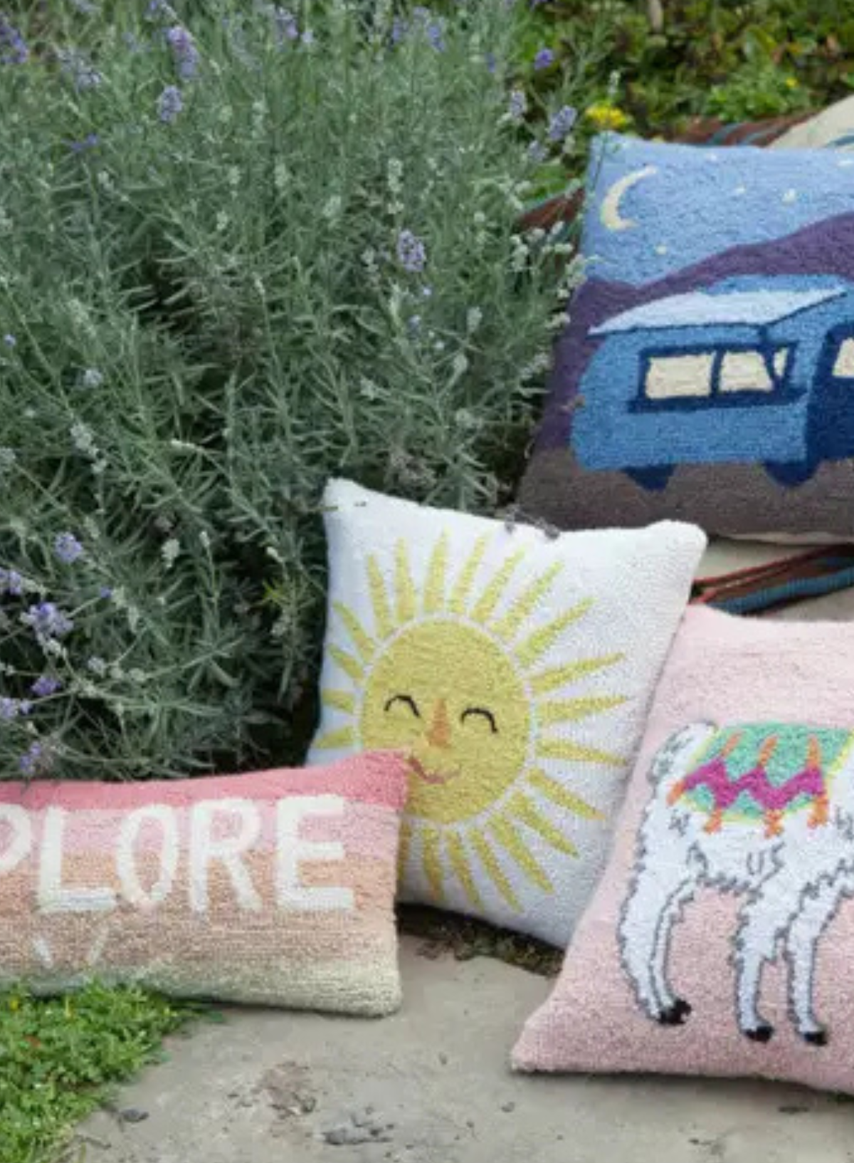 The Sun Hook Cushion from Peking Handicraft features intricate detailing that adds a unique touch to any space.
