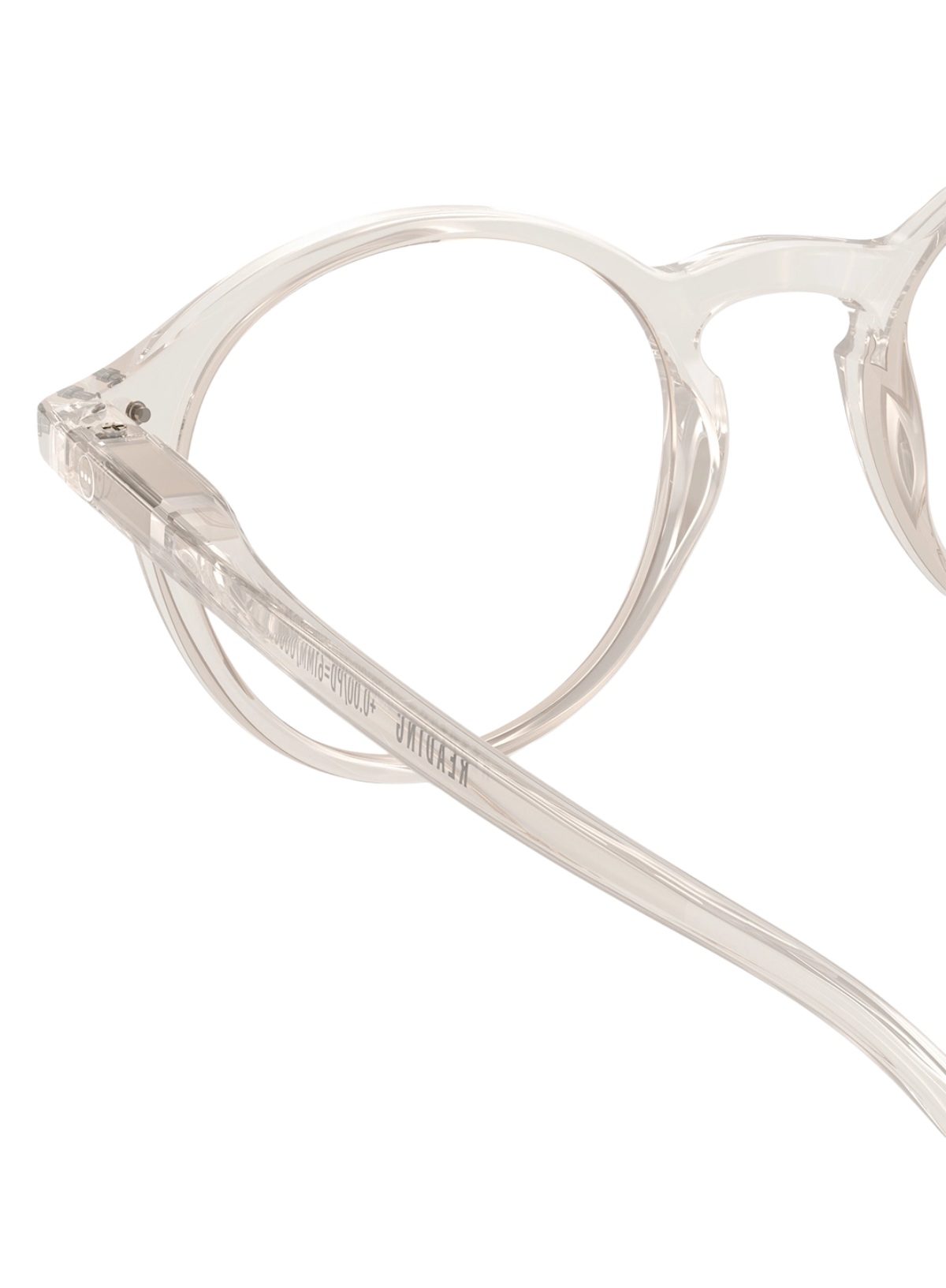 Reading glasses (presbyopia) - Shape #D: round, timeless, best-selling - Unisex, universal model - Biosourced, crystal effect frames - Storage bag included in the box
