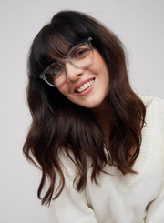 Reading glasses (presbyopia) - Shape #E: trapeze, large, structuring - Mixed and universal model - Crystal, shiny and biosourced frame - Storage pouch included in the box