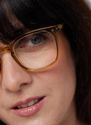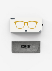 Reading glasses (presbyopia) - Shape #E: trapeze, large, structuring - Mixed and universal model - Crystal, shiny and biosourced frame - Storage pouch included in the box