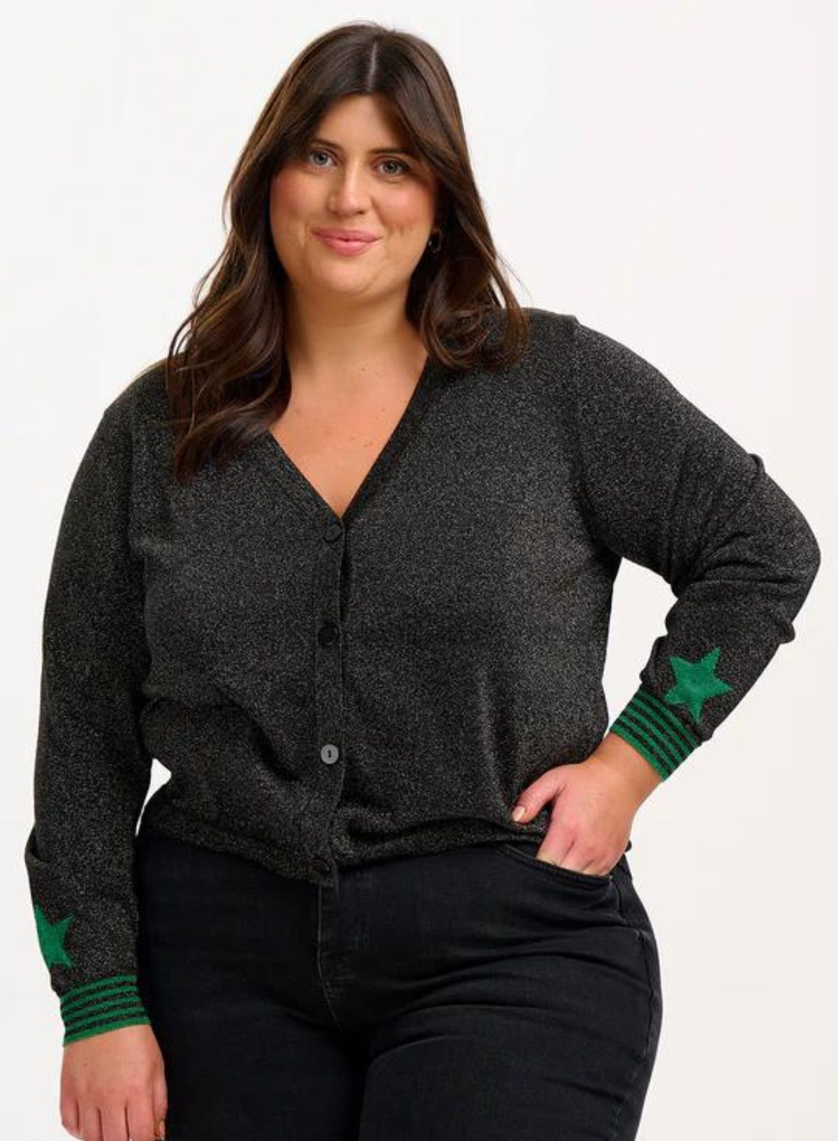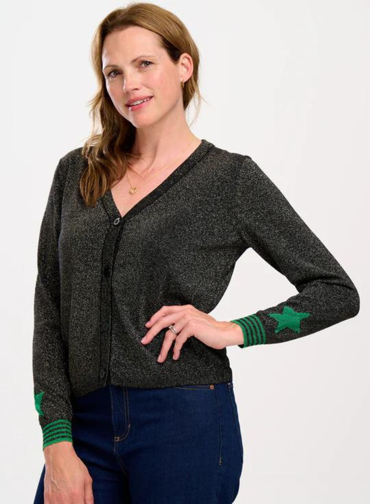 Sugarhill Brighton Arya Cardigan in Black, Green Star Cuff