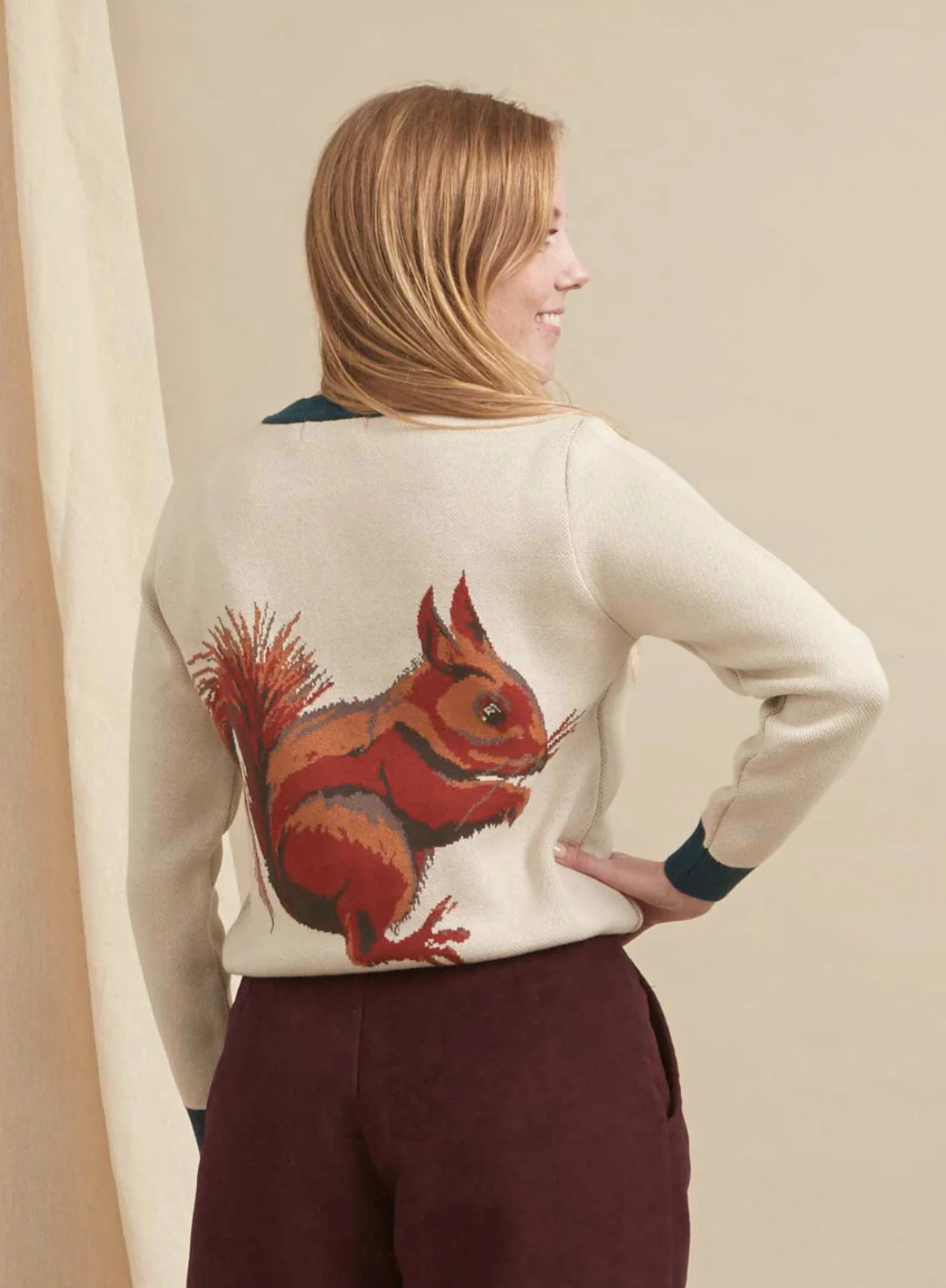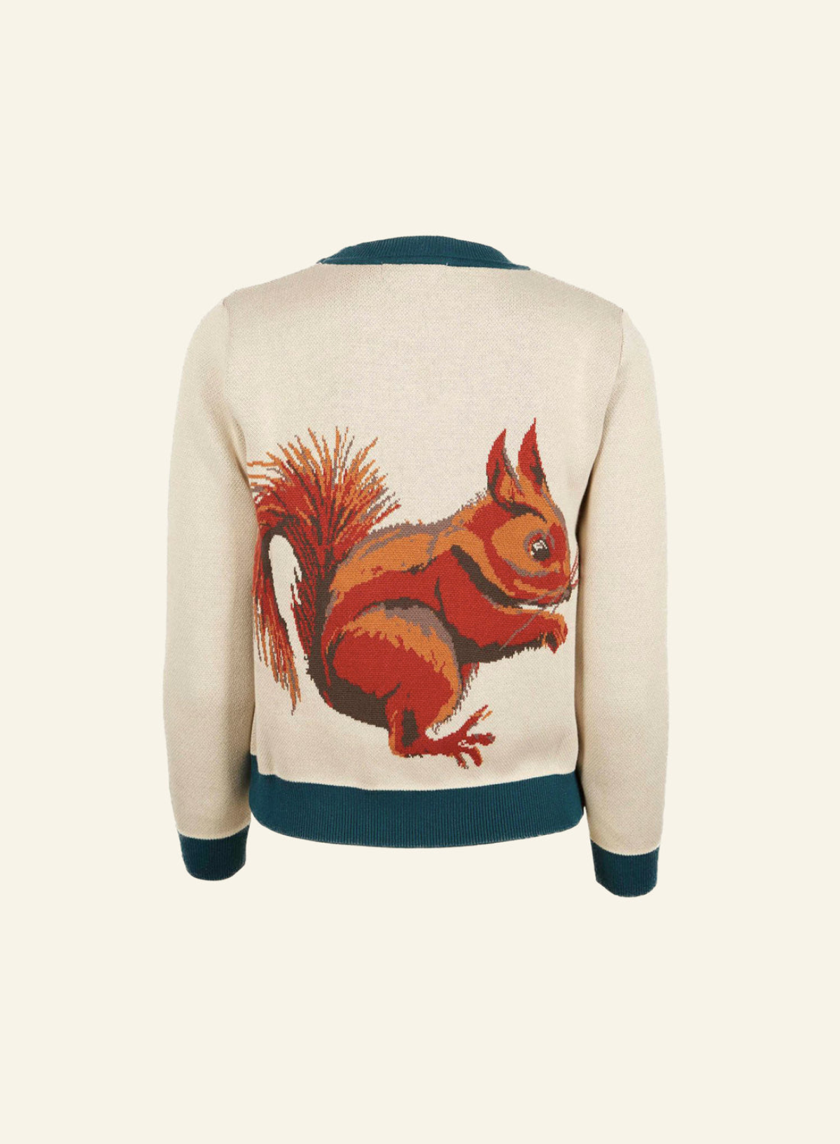 About the Style: Esther Cream Squirrel is a cosy jumper of dreams. The Squirrel is knitted as part of the jumper - a technique known as intarsia, which we absolutely love. Organic cotton makes this jumper extra soft, and better for the environment.