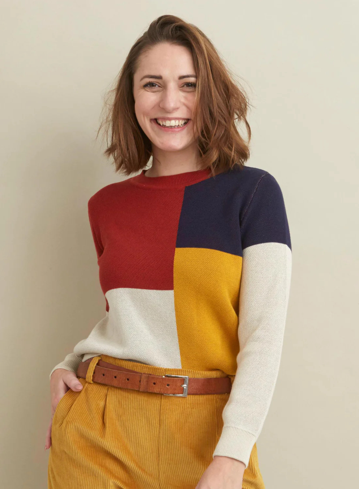 Inspired by the modernist vision of the Bauhaus movement, and many of the fascinating female artists behind it, this jumper is bold in its use of colour, geometrics and scale. A Palava icon, our Bauhaus jumper was part of the autumn 2019 collection.