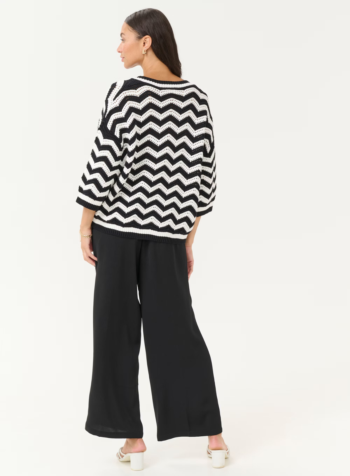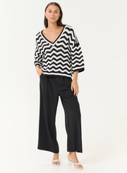 Upgrade your wardrobe with this stylish and versatile black and white v-neck knit top. Made with high-quality materials, this top is designed to provide both comfort and fashion, making it perfect for any occasion. Whether you dress it up or down, this oversized top will surely elevate any outfit.