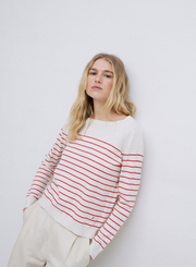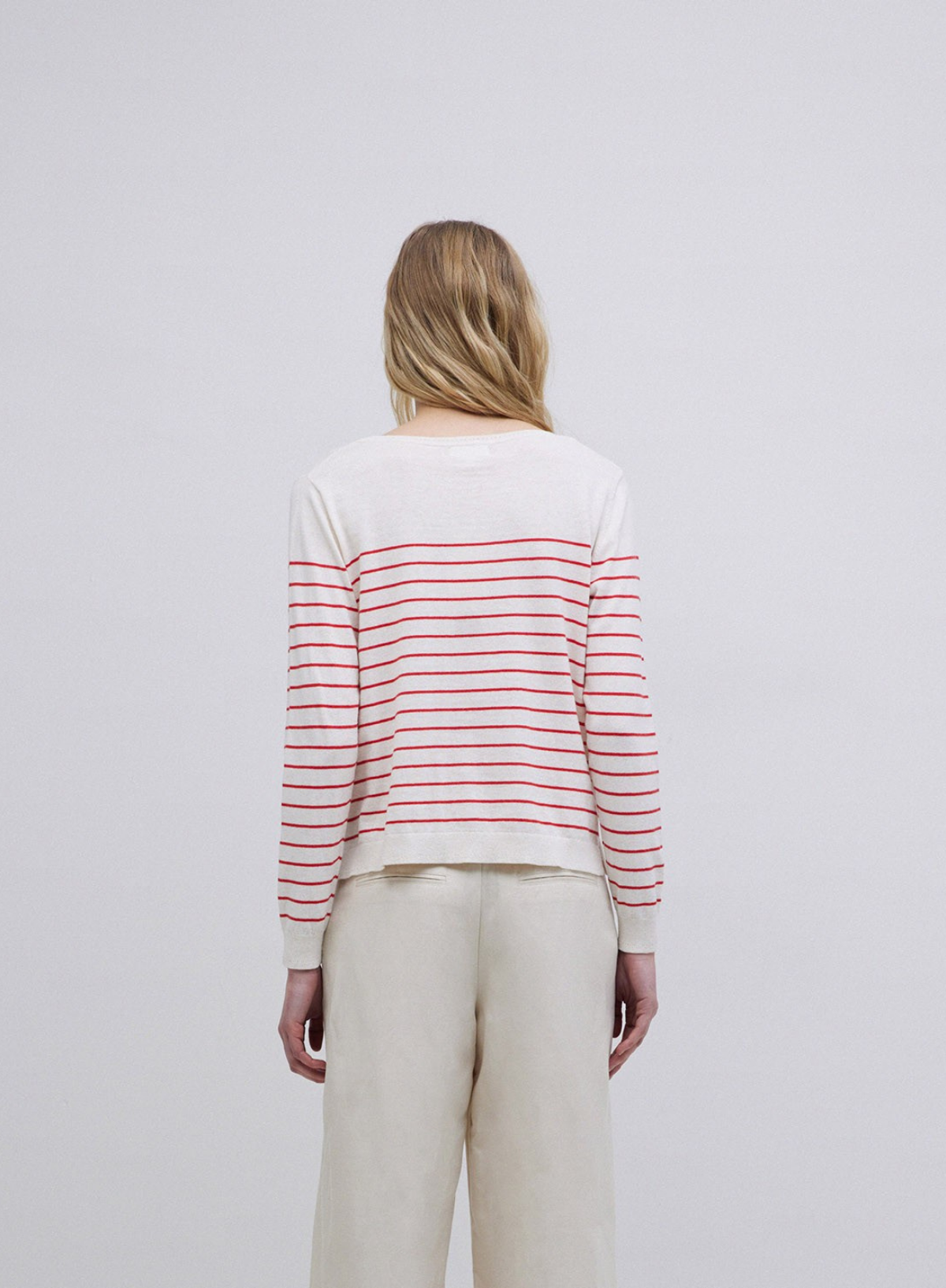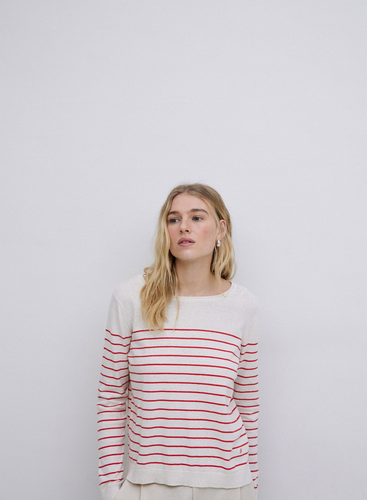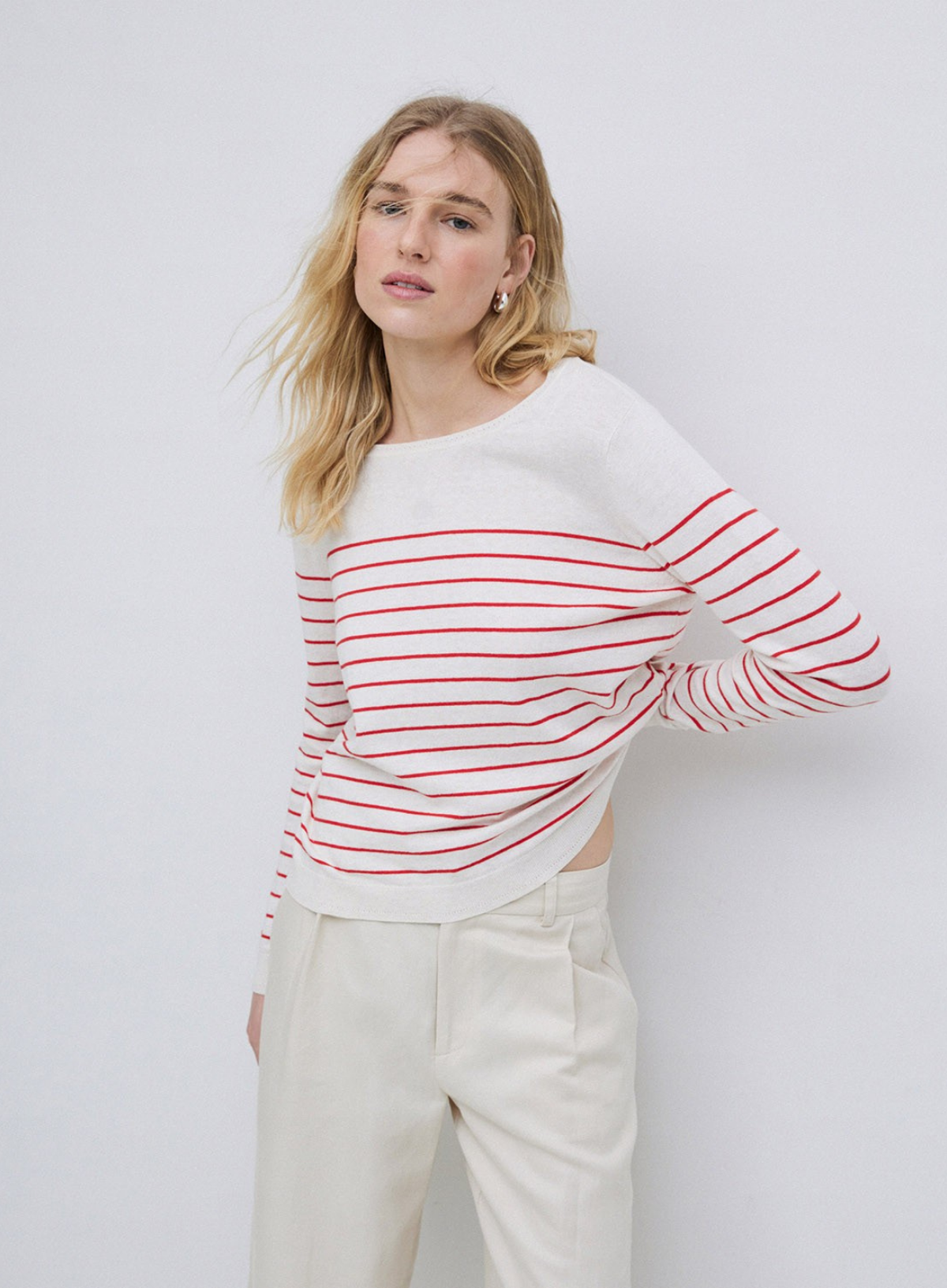 Basic jumper. 100% organic-cotton fabric. Striped print. Straight cut. Bateau neckline. Long sleeves. Ribbed accents.