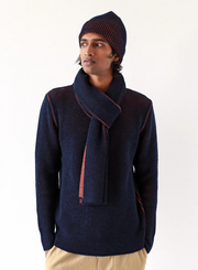 Ribbed Knit Scarf in Navy Iris/Burnt Orange from Far Afield