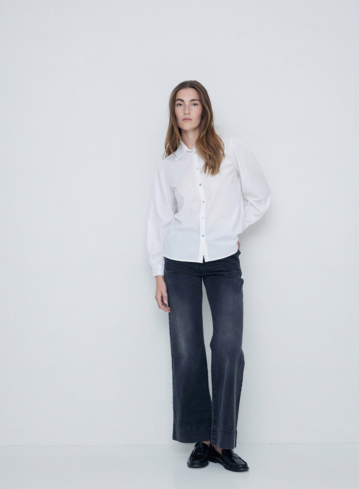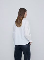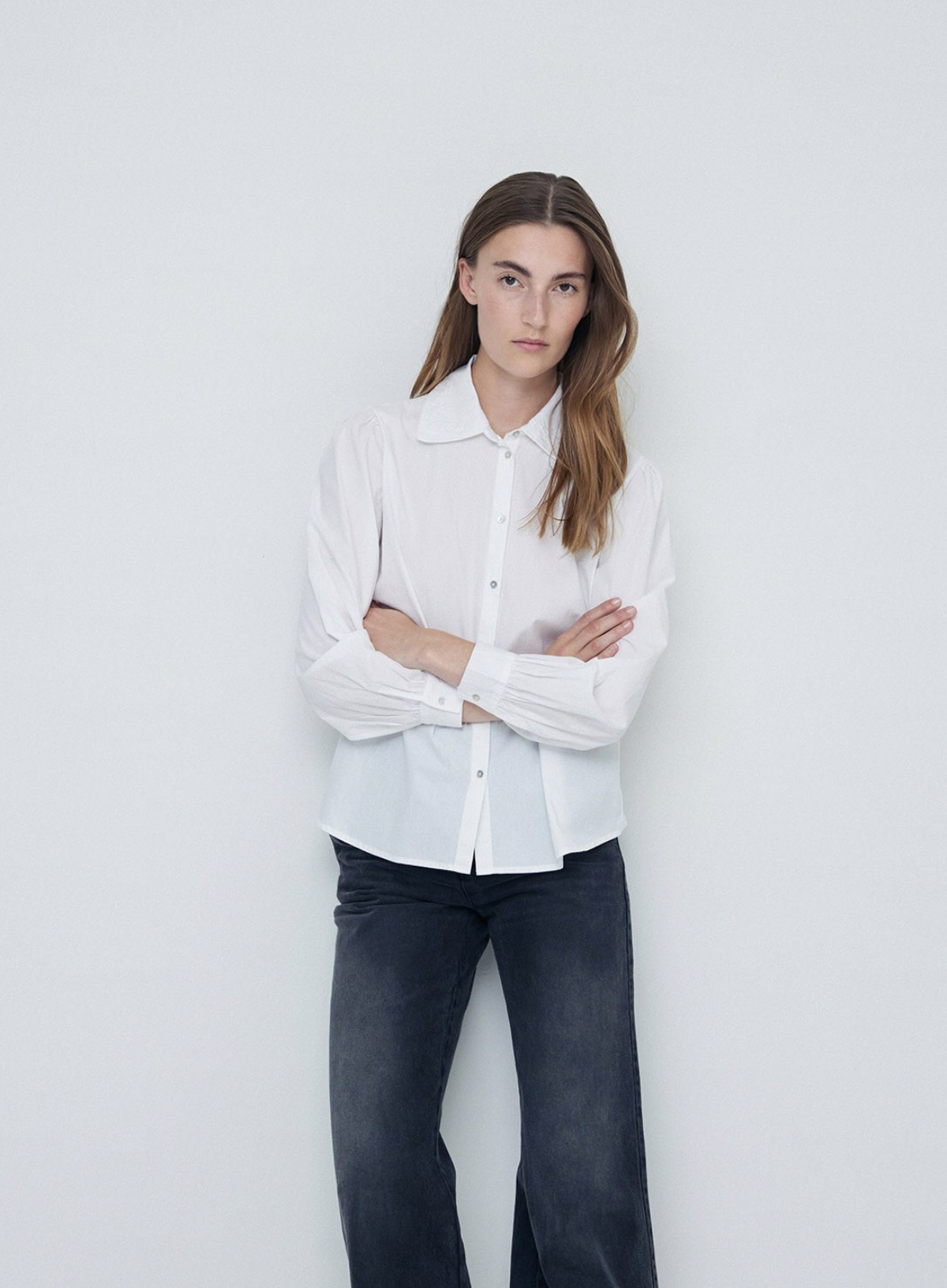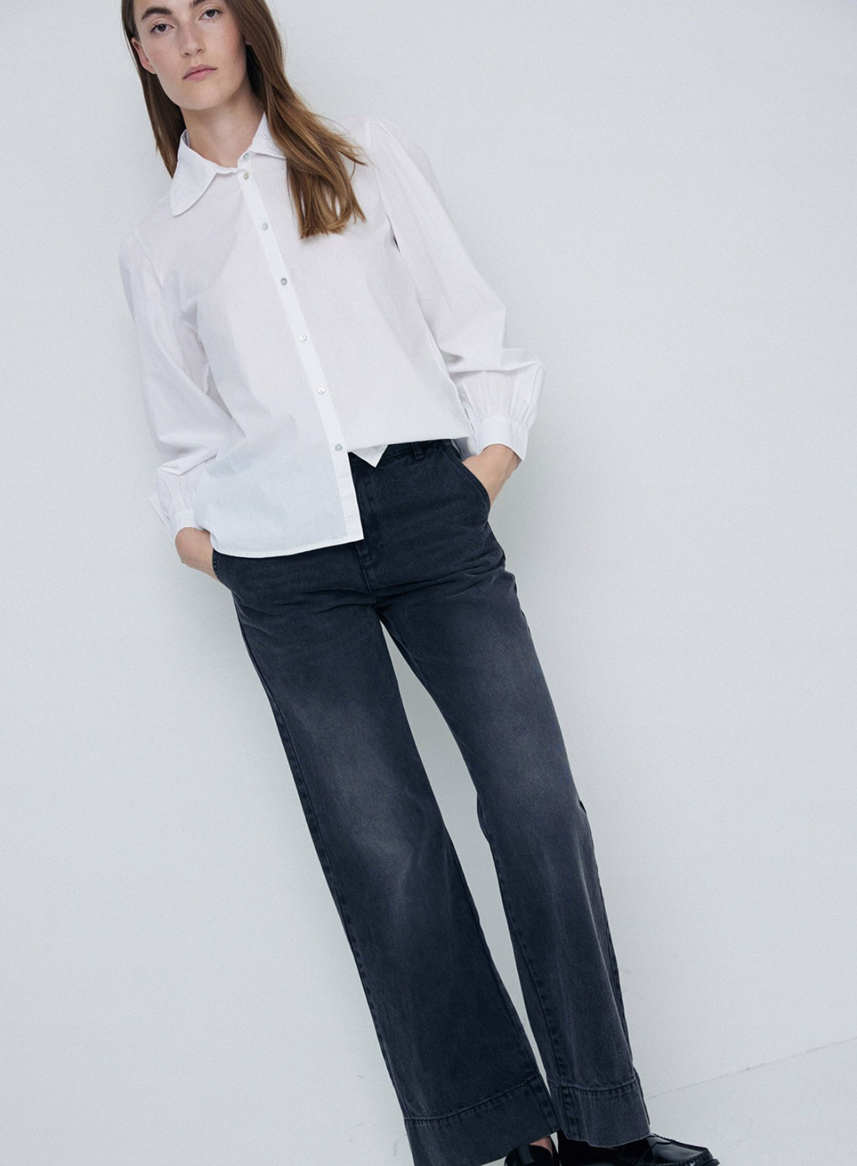 100% cotton shirt. Collar. Long sleeves. Button close in front.