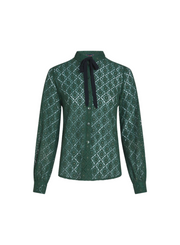 Blouse in a loose fit, with a collar and a tie ribbon. With long sleeves with cuffs, button front closure, in a woven lace non stretch fabric.