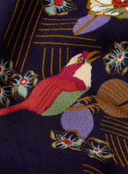 Loose blouse fit with long sleeves with cuffs and a blouse collar. Button front losure in a woven non stretch floral print.