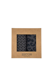 Two pairs of socks in a gift box - charcoal Kyoto & charcoal leopard