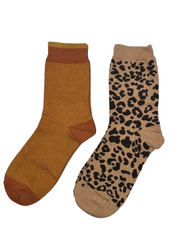 Two pairs of socks in a gift box - sparkly copper tokyo & sand leopard