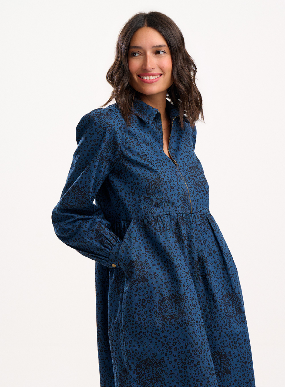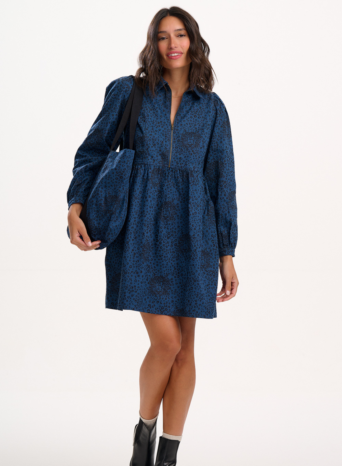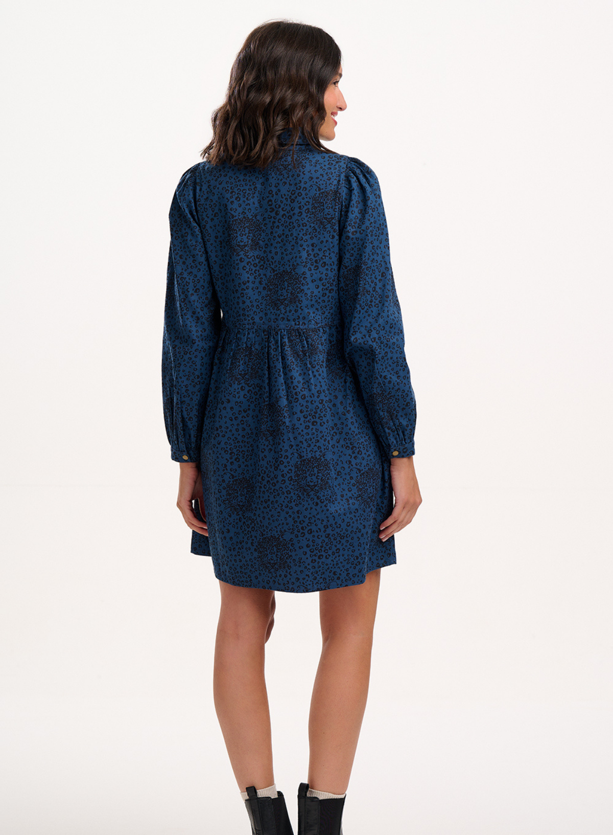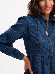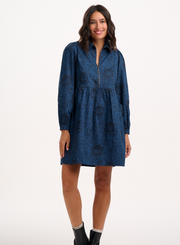 Sugarhill Brighton Karen Mini Smock Dress in Petrol Navy, Hidden Leopard