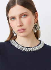 Its standout beaded round collar adds a touch of elegance and sparkle, perfect for elevating any outfit.