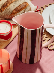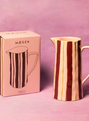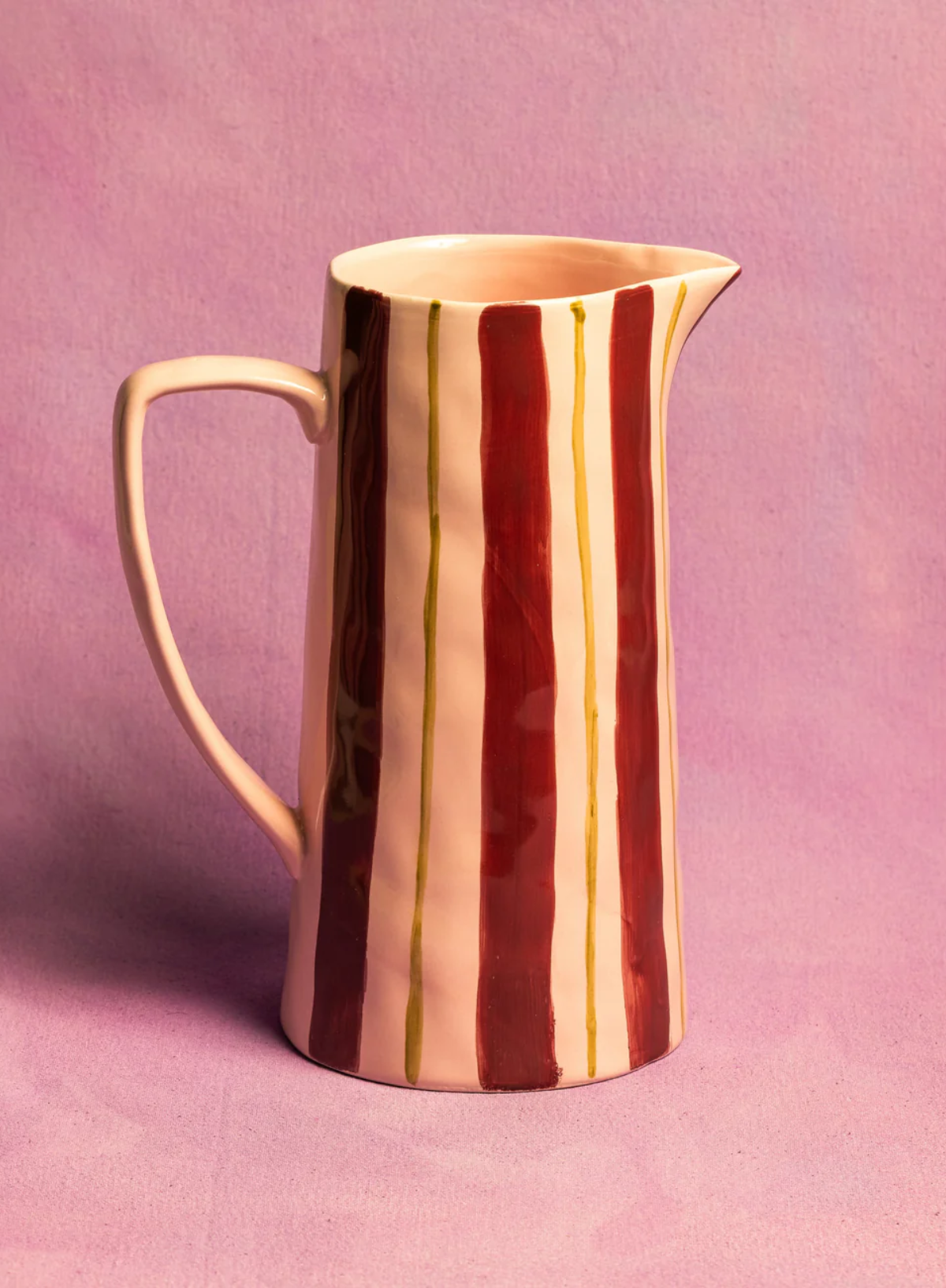 Bring character and charm to your home with Maegen’s hand-painted ceramic striped jugs. Each piece is crafted with care, making every stripe unique. A versatile statement piece, they’re perfect for serving water at the table, or styled as a vase to display fresh blooms on a mantle or sideboard. Bold yet timeless, these jugs blend function with artistry to elevate everyday living.