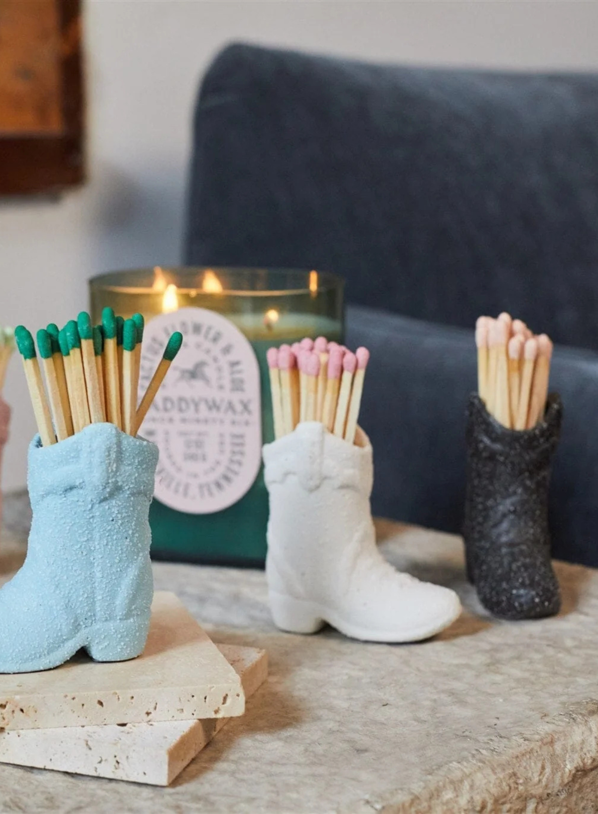 We're head over boots for our home in Nashville, TN! This vintage-inspired ceramic cowboy boot match holder includes 25 safety matches that are easily lit with a strike on the bottom of the boot! After the safety matches run out, this holder is compatible with any match and can provide light by striking on the rough ceramic surface. Whether you are daydreaming about being back in the Music City or wanting a Western vibe, these ceramic boot and hat accessories make the perfect gift set or bookshelf accessory.