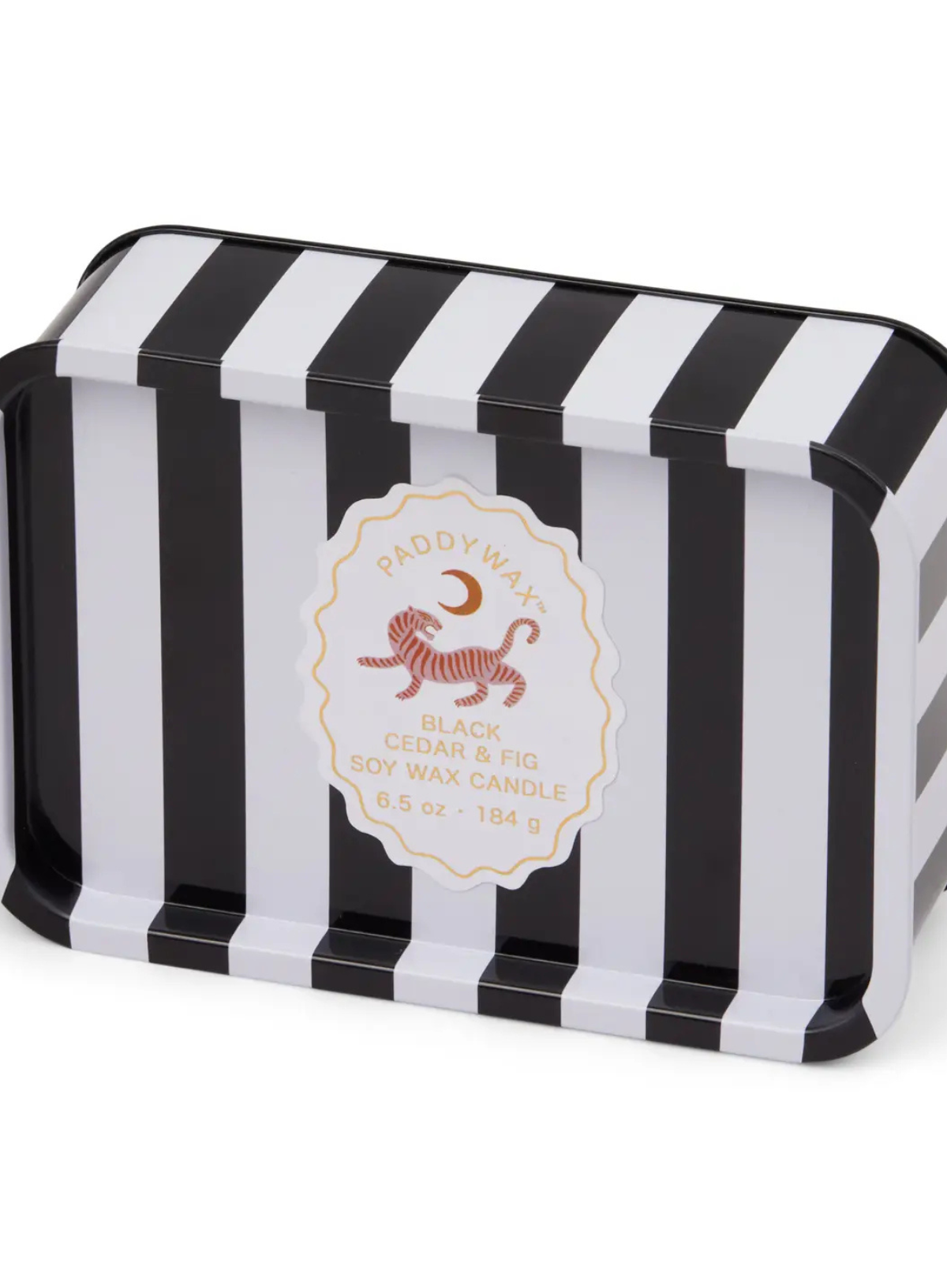 A Dopo 6.5oz Tiger Printed Tin Candle - Black Cedar & Fig from Paddywax