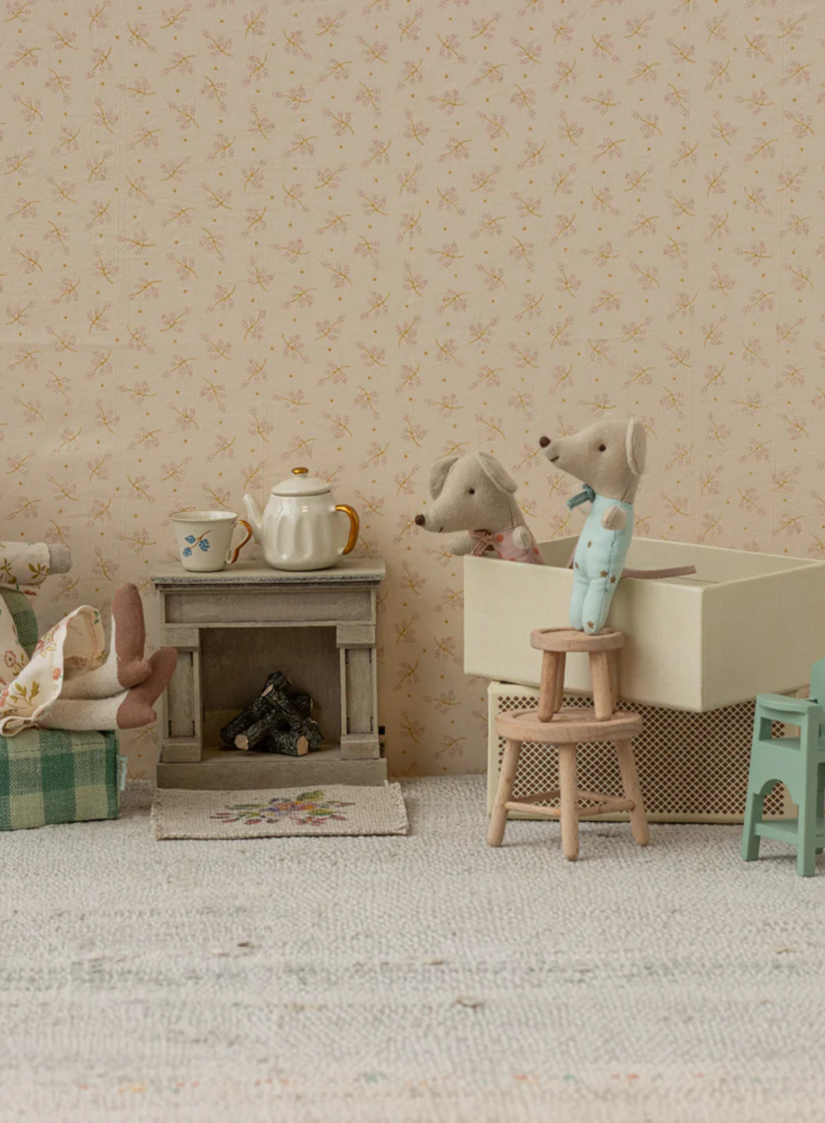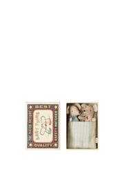 A classic Maileg item. These baby twin mice sleep safely in their sleeping bag side by side, tucked in the matchbox bed. The mice fit all accessories in size baby mouse.