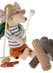 When the hiking mice are out on a trip, they love to sit by the fire and prepare their food. This set comes with sticks, food, and branches. The sticks have a small metal part so the hiking mice can hold the sticks with their magnet paws.