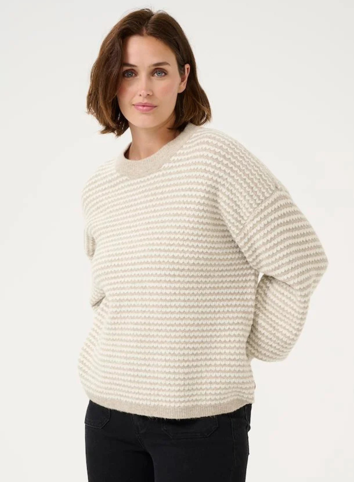 Ellery Knit Pullover in Feather Grey/Chalk Structure from Kaffe