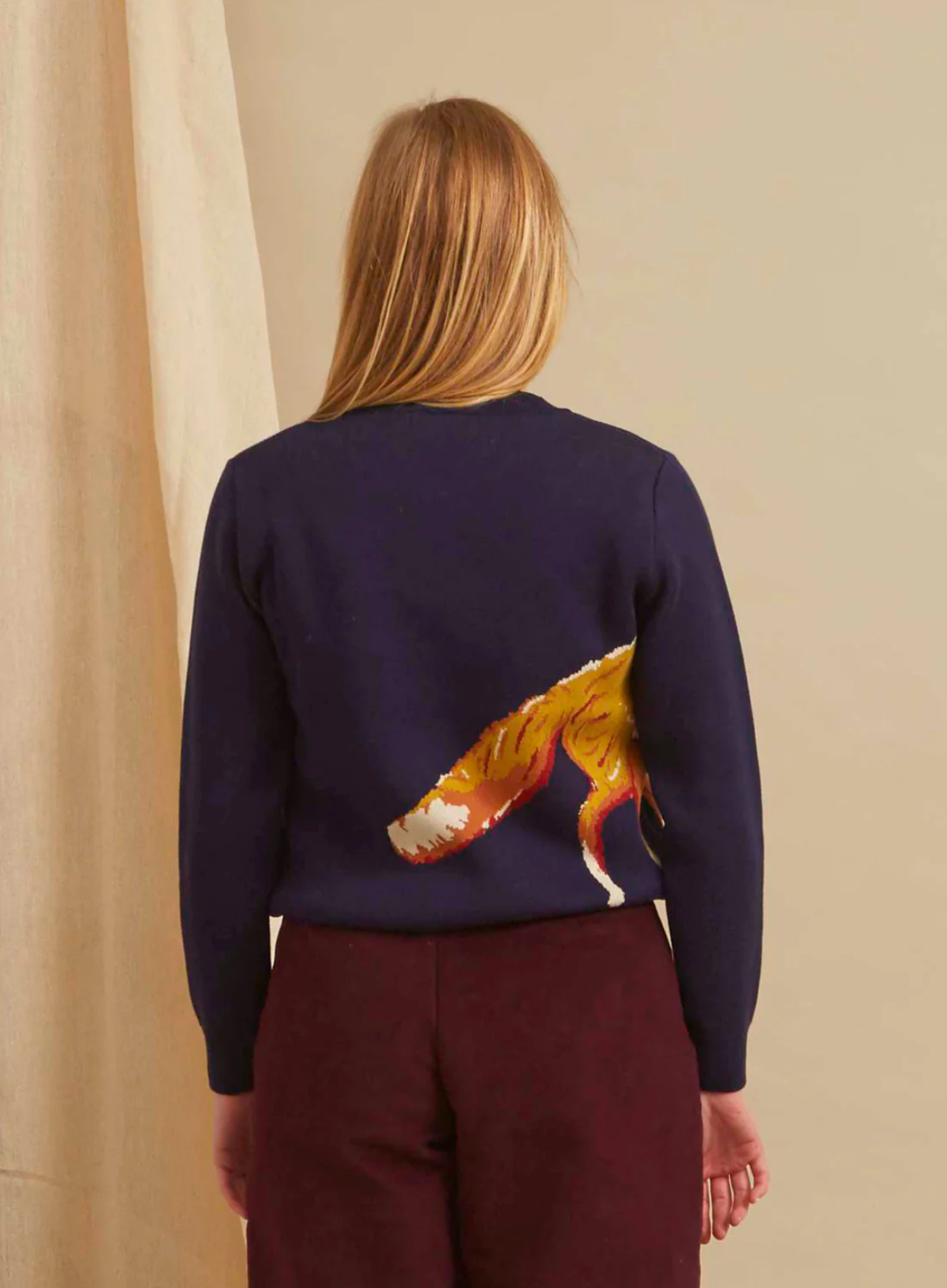 About the Style: Esther Navy Fox is a cosy jumper of dreams. The Fox is knitted as part of the jumper - a technique known as intarsia, which we absolutely love. Organic cotton makes this jumper extra soft, and better for the environment.