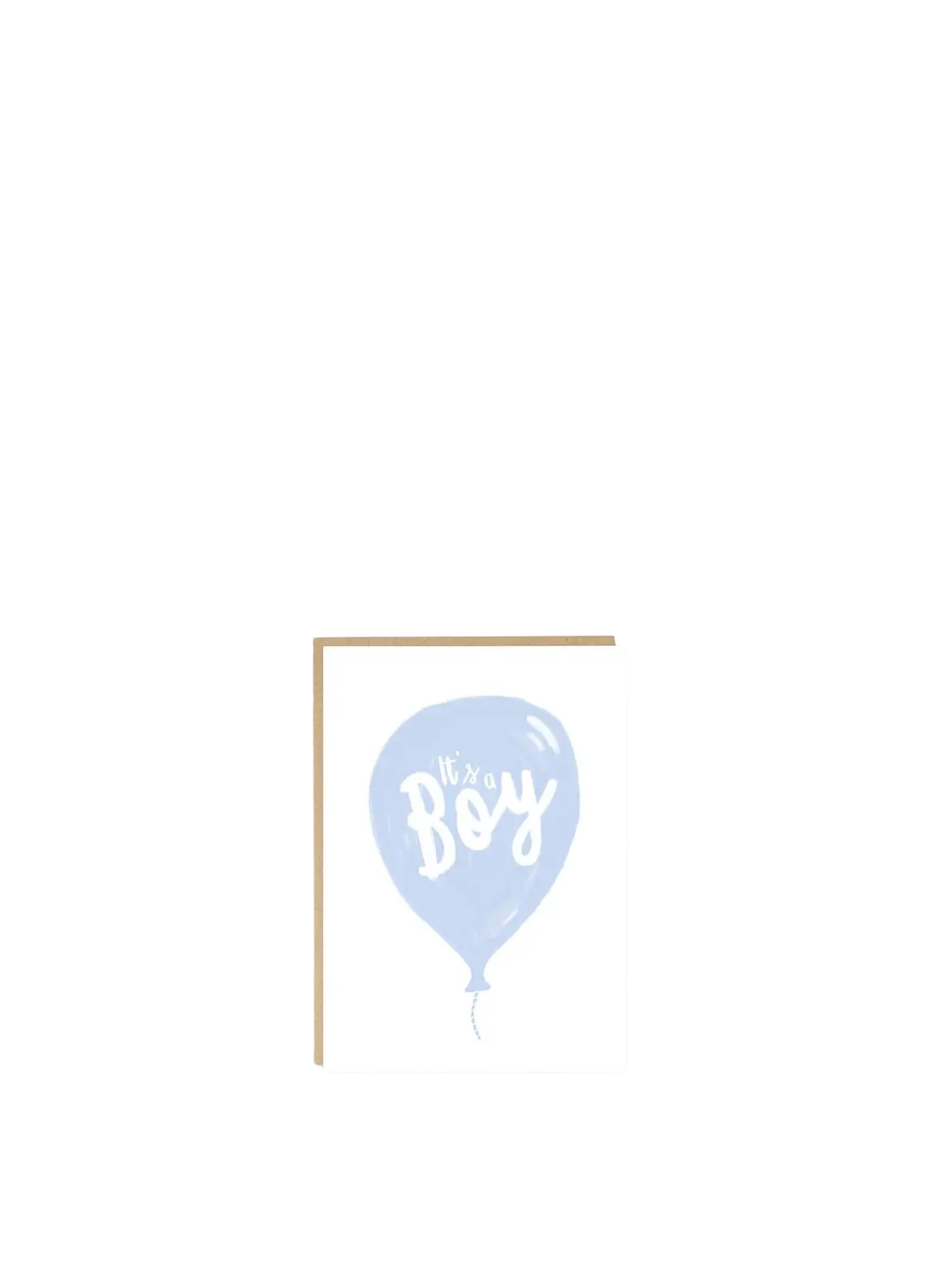 • This card features a pastel blue balloon with the words "It's a Boy" in a calligraphy brush lettering font.