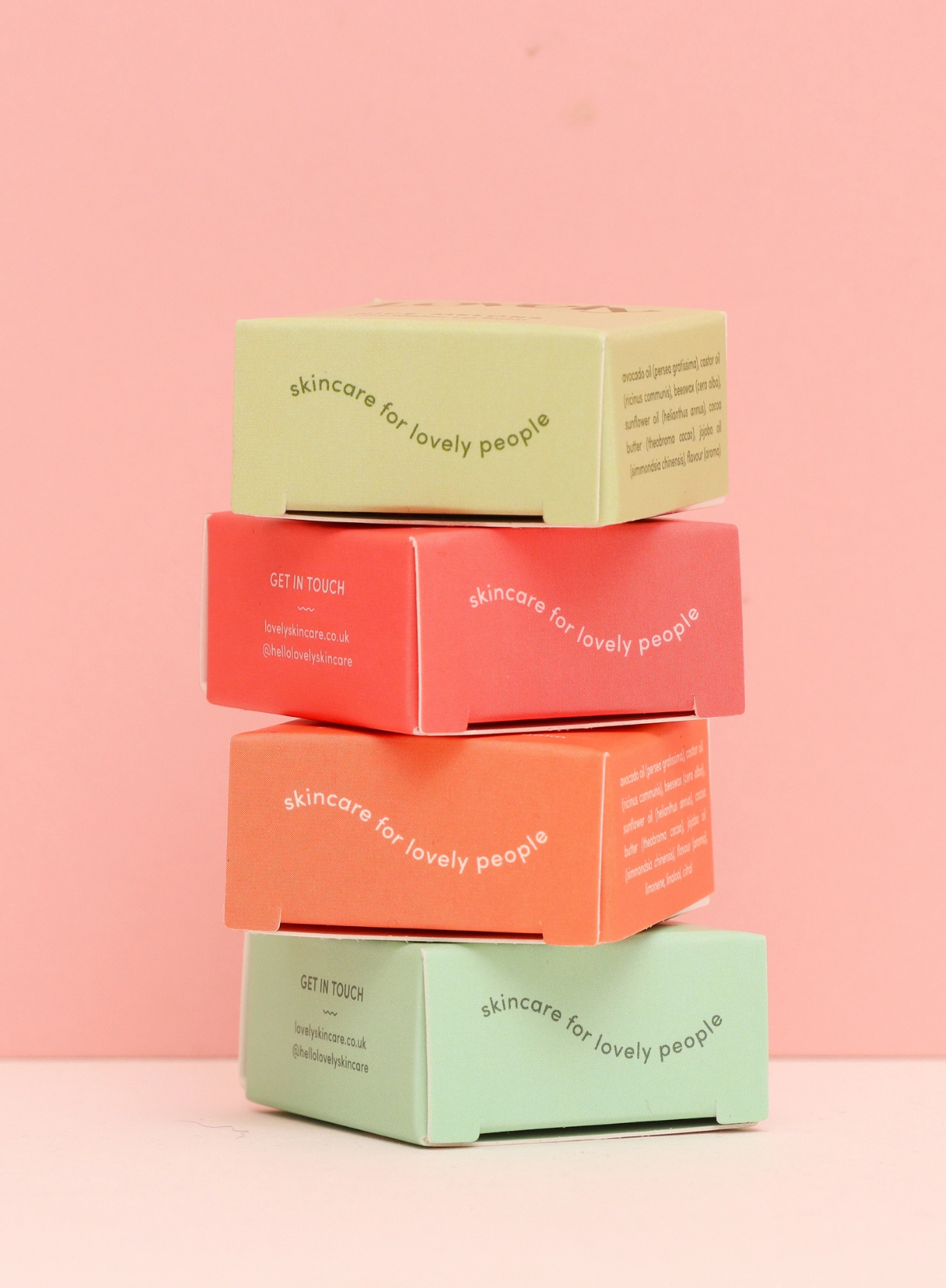 Ingredients - avocado oil (persea gratissima), castor oil (ricinus communis), beeswax (cera alba), sunflower oil (helianthus annus), cocoa butter (theobroma cacao), jojoba oil (simmondsia chinensis), flavour (aroma)